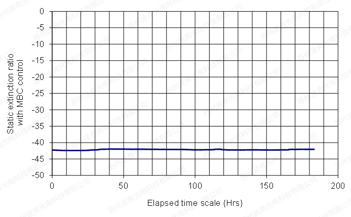 舉例而言,對(duì)于高消光比調(diào)制器MXER系列,消光比(請(qǐng)參考微信文章常見(jiàn)電光調(diào)制器參數(shù)定義)是應(yīng)用的最重要指標(biāo)(請(qǐng)參考微信文章BOTDA光纖傳感系統(tǒng)中電光調(diào)制器和光纖的選擇)。由于偏壓的漂移,消光比也就隨之變差,因此長(zhǎng)時(shí)間穩(wěn)定的消光比必須通過(guò)偏壓控制器MBC連實(shí)現(xiàn)。如下圖,通過(guò)外置耦合器和偏壓控制器可以實(shí)現(xiàn)>40dB長(zhǎng)時(shí)間的消光比穩(wěn)定性。如果使用調(diào)制器內(nèi)部的PD作為監(jiān)控方式而不用外部耦合器,僅能保證>30dB的消光比穩(wěn)定性。