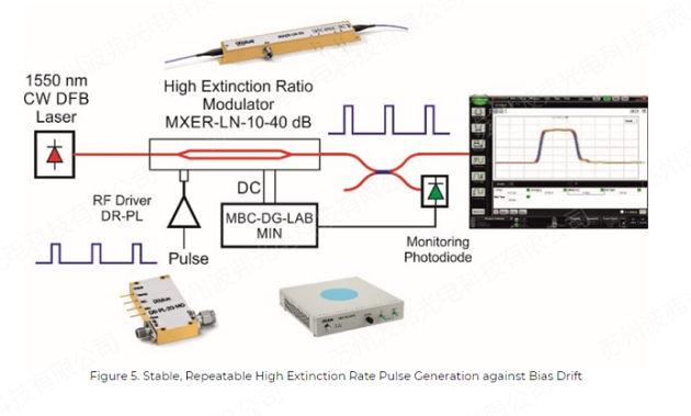 高度通用的MX-LN-10有一個(gè)X-cut設(shè)計(jì),廣泛的工作條件,以及零啁啾性能和無與倫比的穩(wěn)定性。iXblue專有的波導(dǎo)設(shè)計(jì)提供了低插入損耗和高消光比。MX-LN-10由于具有高帶寬、穩(wěn)定性好和低插入損耗,非常適合用于BOTDA系統(tǒng)的DSB-SC。DR-AN-10-HO是一種寬帶射頻放大器模塊,設(shè)計(jì)用于頻率高達(dá)11GHz的模擬應(yīng)用。DR-AN-10-HO具有低噪聲系數(shù)和線性傳遞函數(shù)的特點(diǎn),其1dB壓縮點(diǎn)大于23dBm。它在整個(gè)帶寬上表現(xiàn)出平坦的群延遲和增益曲線,波動(dòng)很小,該放大器模塊非常適合匹配MX-LN-10做DSB-SC應(yīng)用。 利用MBC-DG-LAB和MBC-DG-board可以鎖定馬赫-曾德爾調(diào)制器的工作點(diǎn),保證了對(duì)偏置漂移的長(zhǎng)期穩(wěn)定性。