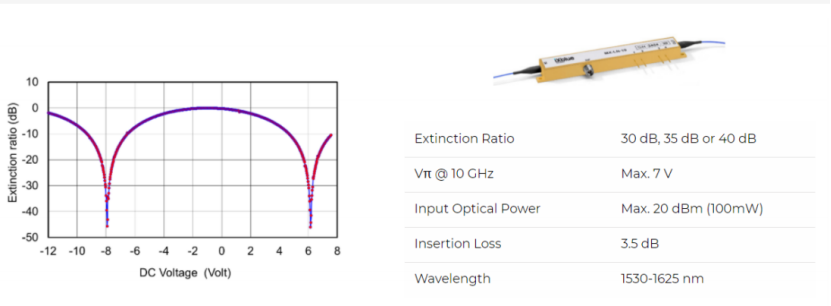 1550nm波段,10GHz/20GHz高消光比強(qiáng)度調(diào)制器(ER> 30,35,40dB) |
