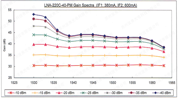 LNA-220C-40-SM測(cè)試參考(40dB增益,SMF光纖)