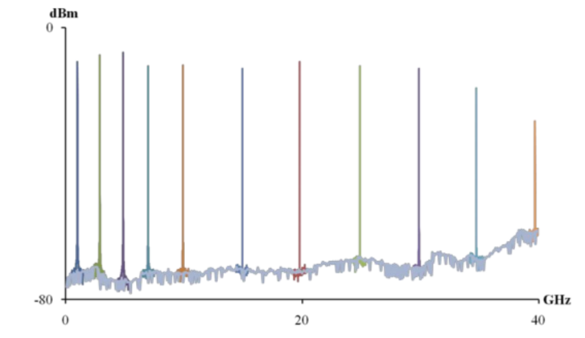 通過(guò)光接收器和射頻頻譜分析儀測(cè)量的樣本外差信號(hào)。