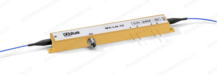 下圖顯示了M-Z電光調(diào)制器的典型外觀結(jié)構(gòu),iXblue的強(qiáng)度調(diào)制器由一個(gè)射頻RF端口和4個(gè)針腳組成: