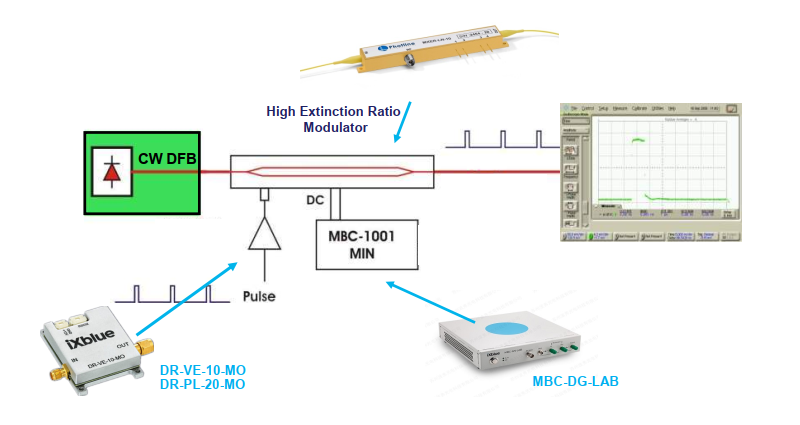 直流偏壓點(diǎn)的漂移可以使用iXblue的MBC(調(diào)制器自動(dòng)偏壓控制器)解決方案進(jìn)行主動(dòng)監(jiān)測(cè)和控制:臺(tái)式儀器MBC-DG-LAB或MBC-DG-board鎖定用于脈沖應(yīng)用的Mach-Zehnder調(diào)制器的工作點(diǎn)。
