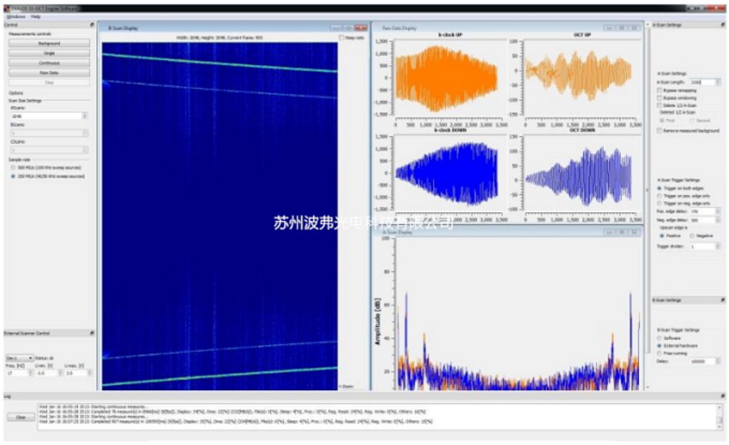 OCT信號(hào)處理基于k時(shí)鐘信號(hào)采集,實(shí)時(shí)相位展開和先進(jìn)的線性化算法,可實(shí)現(xiàn)類似于使用樣條插值的離線處理的高質(zhì)量A掃描。 光譜加窗,色散補(bǔ)償和背景減法是實(shí)時(shí)獨(dú)立進(jìn)行的,用于前向和后向掃描。 顯示引擎執(zhí)行視頻速率(> 25 fps)顯示A掃描(每個(gè)陣列2,048個(gè)點(diǎn))和B掃描(每個(gè)B掃描1024個(gè)A掃描)。更多產(chǎn)品完整信息,請(qǐng)聯(lián)系蘇州波弗光電科技有限公司,聯(lián)系電話:0512-62828421,咨詢郵箱:sales@bonphot.com !