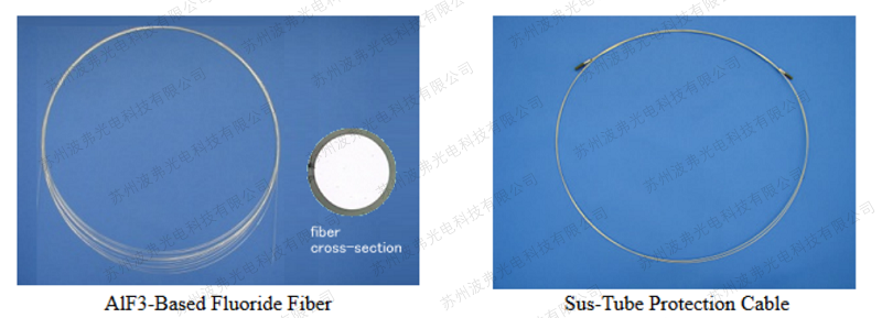 AlF3基光纖是以AlF3為主要成分的多組分氟化物光纖。與 ZBLAN 氟化物光纖相比,它們在激光損傷閾值和防水性方面更勝一籌,并且在2.9μm處具有比 GeO2光纖更小的傳輸損耗。 它們已在世界各地用作2.94μmEr-YAG激光治療設(shè)備的光導(dǎo)。 此外,由于具有0.3至3.5μm的寬透明窗口,它們還可用作中紅外光譜的光導(dǎo)。