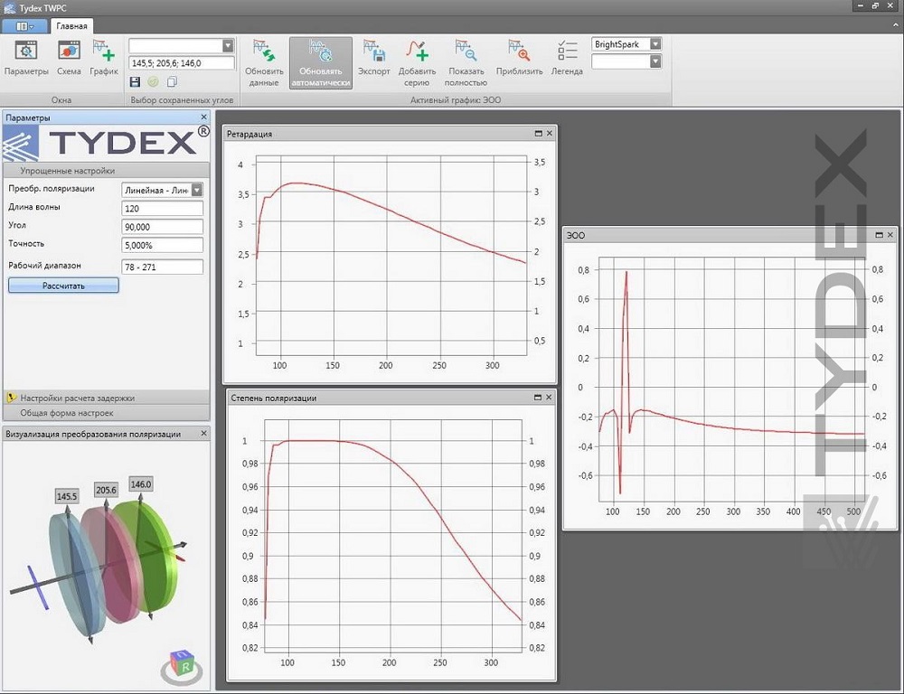 TYDEX開(kāi)發(fā)了TWPC,用于在寬范圍內(nèi)轉(zhuǎn)換任何波長(zhǎng)的輻射偏振。 儀器隨附的專(zhuān)用軟件可以計(jì)算轉(zhuǎn)換參數(shù)和限值。
