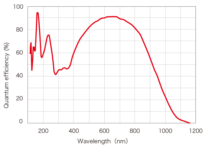 C8000-30使用濱松公司制造的超高靈敏度背照式CCD,在紫外、可見光和近紅外波段具有極高的量子效率。其在120nm處的高紫外靈敏度對半導體掩膜檢測以及測量等應用十分有利。此外,近紅外波段的高靈敏度可用于熒光測量、近紅外激光二極管測量等等。