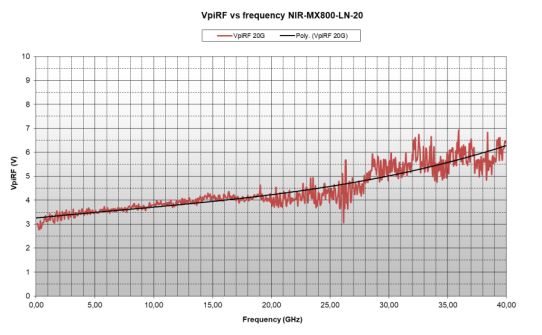 調(diào)制器半波電壓Vπvs頻率范圍 @850 nm |